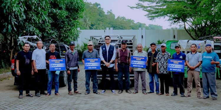 Penyerahan alsintan dilakukan di rumah aspirasi Teguh Iswara Suardi, di hadapan para ketua kelompok tani, simpatisan diantaranya :
