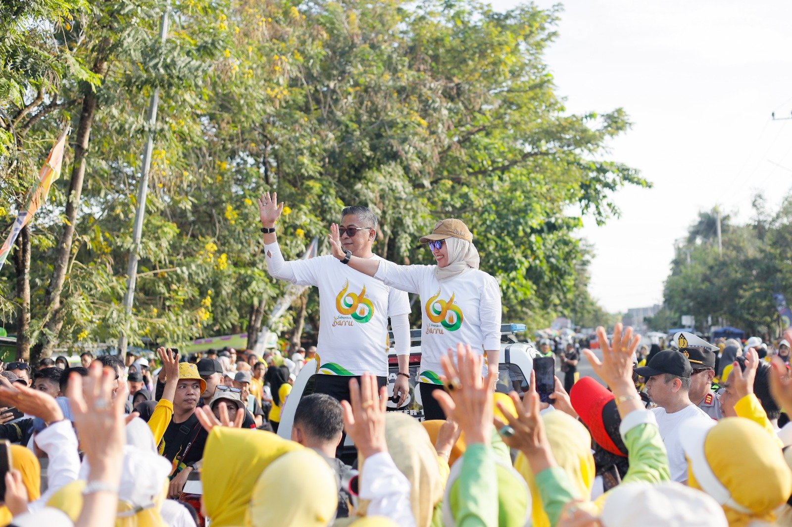 Suasana semakin semarak saat Wakil Bupati Abustan Andi Bintang turut membakar semangat peserta dengan yel-yel khas. “Hari ini semangat! Bahagia untuk Hari Jadi ke-66! Kalau saya bilang ‘Kabupaten Barru’, jawab ‘Okesi !’ Kabupaten Barru! Okesi ! Kabupaten Barru! Okesi ! Sekali lagi, Kabupaten Barru! Okesi !” serunya yang disambut riuh peserta.