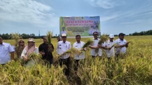 Selesai penyerahan Alsintan. Direktur Pusat Pendidikan Kementan RI, lanjut panen bersama di kelompok tani Larumpia II musim tanam I 2025-2026.