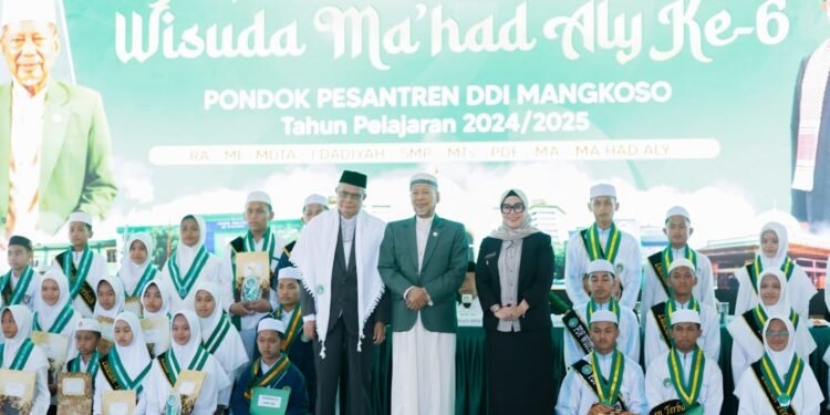 Satukatanews.com. – BARRU – Bupati Barru, Andi Ina Kartika Sari, SH., M.Si., didampingi oleh Wakil Bupati Dr. Ir. Abustan Andi Bintang, M.Si., menghadiri Penamatan Santri ke-83 dan Wisuda ke-6 Ma’had Aly Pondok Pesantren DDI Mangkoso Tahun Pelajaran 2024/2025 di Kampus 3 Putri Bululampang, Kecamatan Soppeng Riaja, Ahad (29/06/2025).