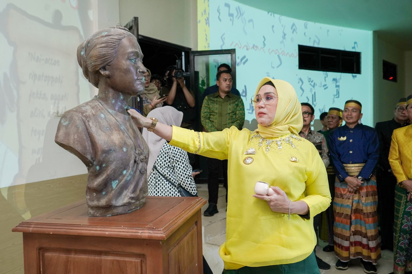 Dalam suasana yang hangat dan penuh kekhidmatan, Bupati Andi Ina melangkah memasuki ruang pamer, berhenti sejenak di depan patung dada Colliq Pujie.