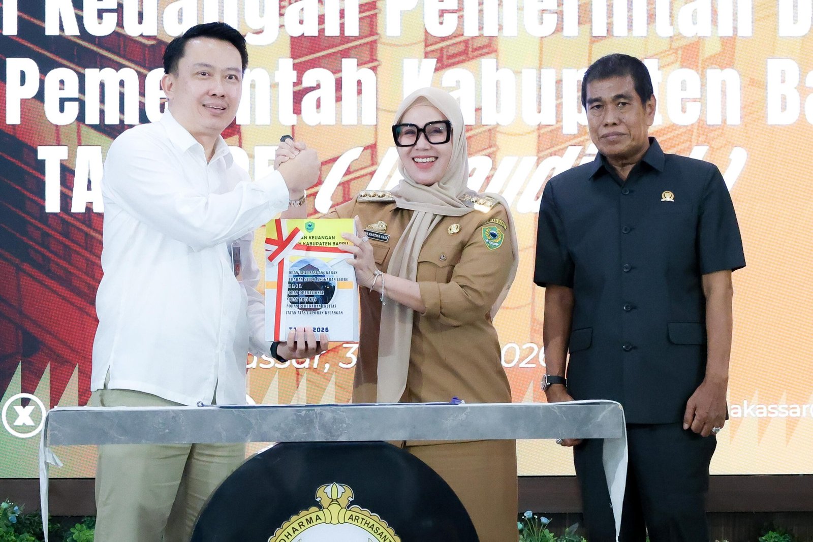 Satukatanews.com. – MAKASSAR – Pemerintah Kabupaten Barru menyerahkan Laporan Keuangan Pemerintah Daerah (LKPD) Unaudited Tahun Anggaran 2025 kepada BPK RI Perwakilan Sulawesi Selatan, Selasa (31/3/2026), di Kantor BPK RI Perwakilan Sulawesi Selatan, Makassar.