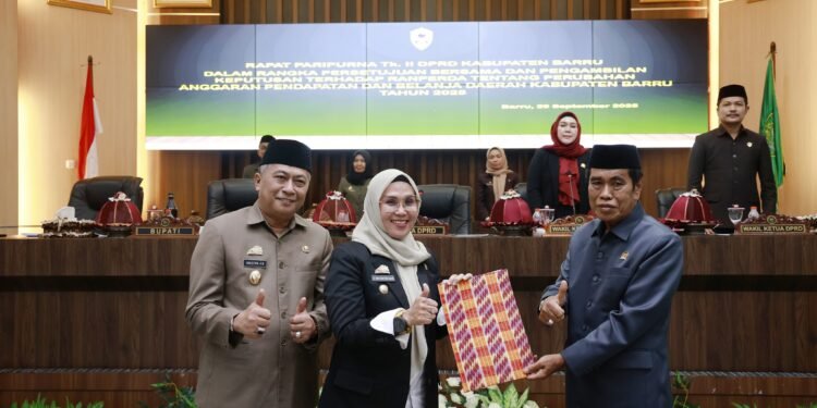 Penandatangan keputusan bersama terhadap APBD-P tersebut dilakukan Bupati Barru A. Ina Kartika Sari, SH. M. Si bersama Ketua DPRD Barru Drs. H. Syamsuddin Muhiddin. M. Si diruang Sidang DPRD Barru, Senin 29/9/2025.