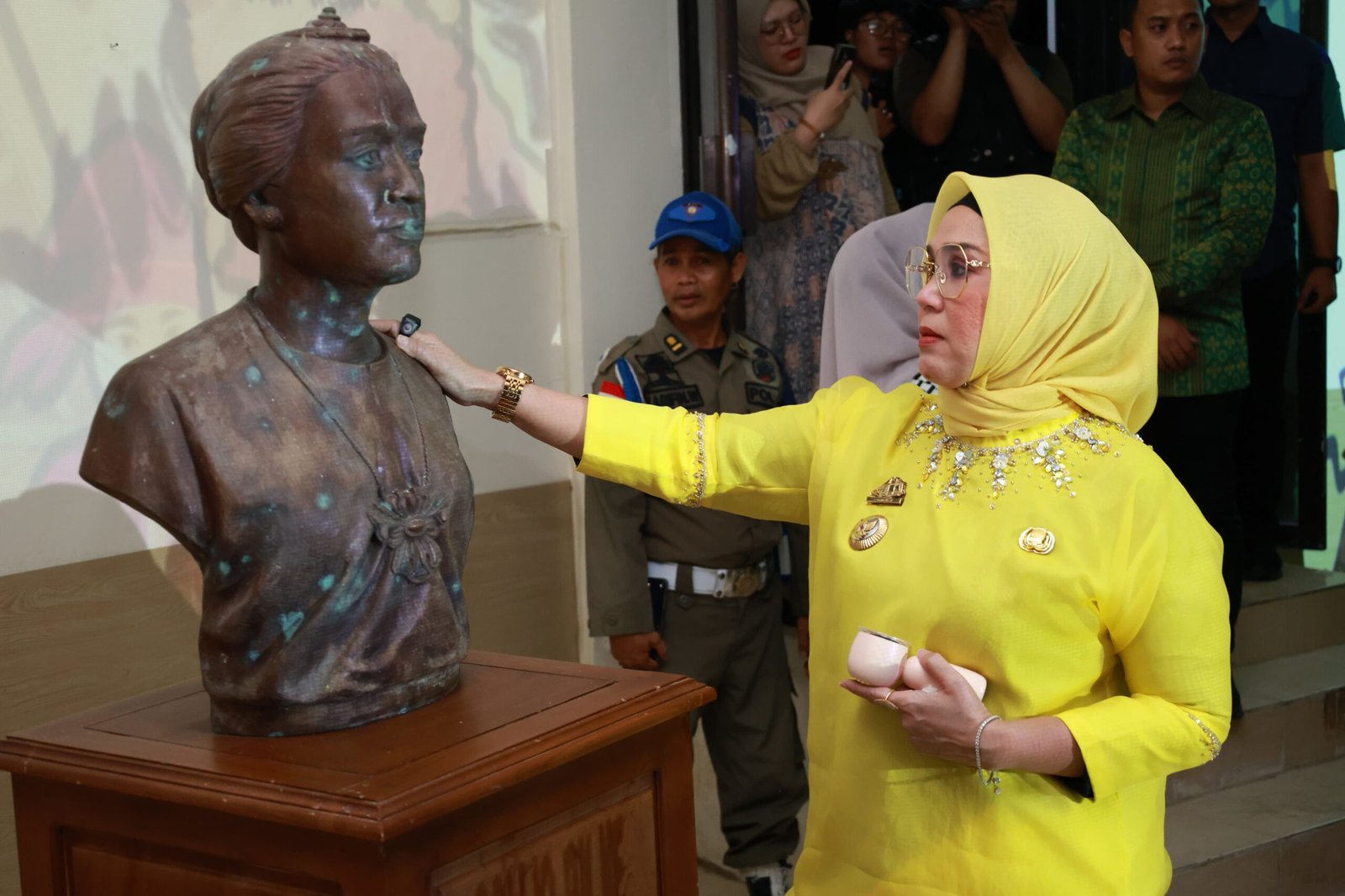 Dalam suasana yang hangat dan penuh kekhidmatan, Bupati Andi Ina melangkah memasuki ruang pamer, berhenti sejenak di depan patung dada Colliq Pujie.