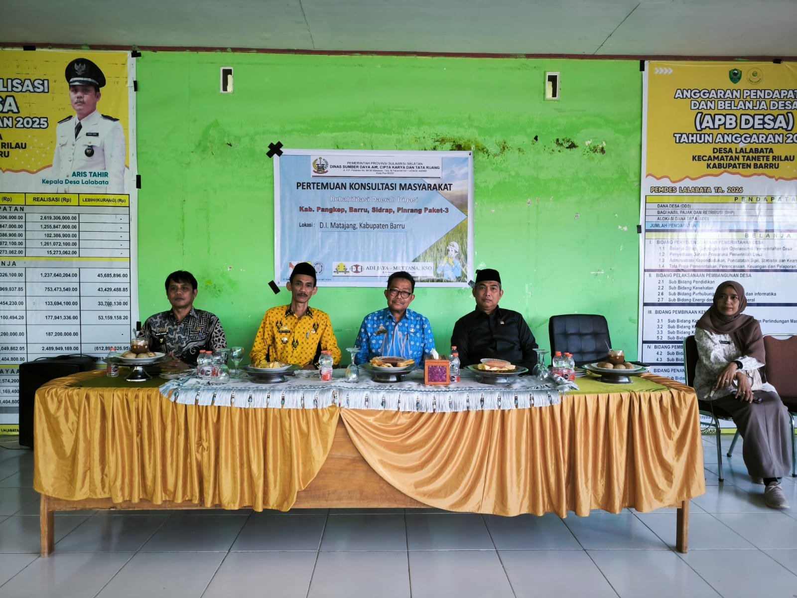 Satukatanews.com. – BARRU – Pemerintah Provinsi Sulawesi Selatan melalui Dinas Sumber Daya Air, Cipta Karya, dan Tata Ruang (SDACKTR) menggelar Pertemuan Konsultasi Masyarakat (PKM) 1 dalam rangka pelaksanaan pekerjaan Rehabilitasi Daerah Irigasi (DI) Matajang, Kabupaten Barru. Kegiatan yang berlangsung di Kantor Desa Lalabata pada Kamis (02/04/2026) ini bertujuan untuk mensosialisasikan rencana teknis serta menyerap aspirasi warga terdampak.