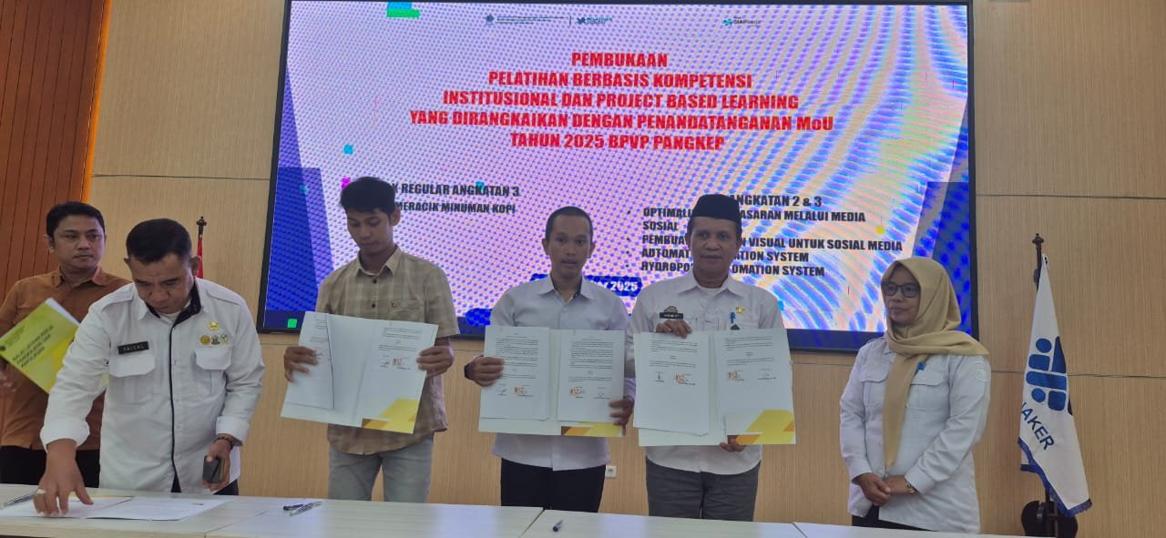 Satukatanews.com. – PANGKEP – Kepala Dinas Pertanian dan Ketahanan Pangan Kabupaten Barru, Ir. Ahmad, M.M., bersama Kepala Dinas Tenaga Kerja Kabupaten Barru, mengikuti kegiatan Pelatihan Berbasis Kompetensi Institusional dan Project Based Learning yang diselenggarakan oleh Balai Pelatihan Vokasi dan Produktivitas (BPVP) Pangkep, Rabu (24/09/2025).