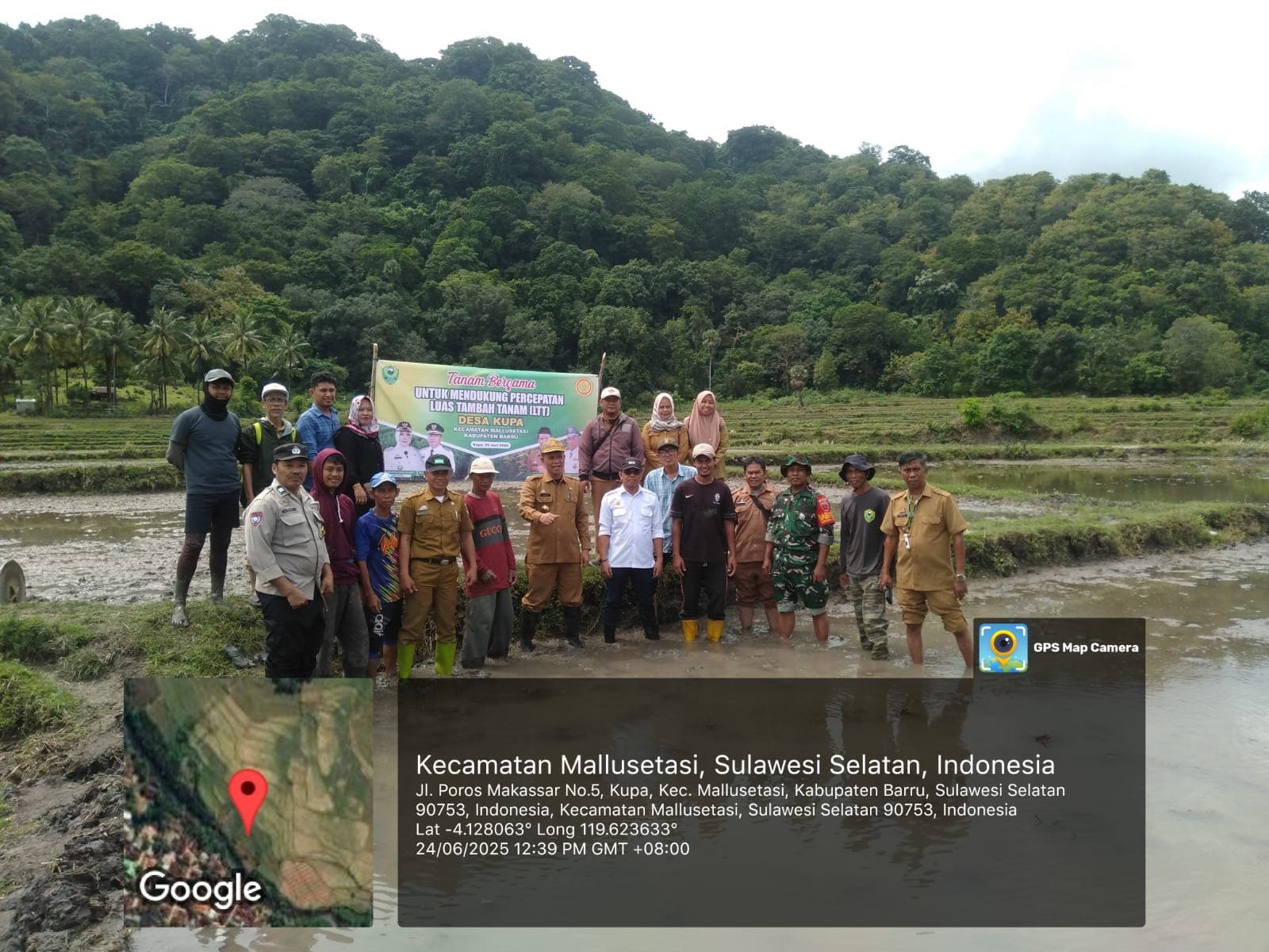 Satukatanews.com. – BARRU,  24 Juni 2025 – Dalam rangka mendukung program strategis nasional di sektor pertanian, Pemerintah Kabupaten Barru melalui Dinas Pertanian melaksanakan kegiatan Tanam Bergama di Desa Kupa, Kecamatan Mallusetasi, Selasa (24/6). Kegiatan ini menjadi bagian dari upaya percepatan Luas Tambah Tanam (LTT) musim tanam tahun 2025.