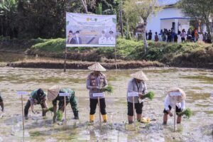 Satukatanews.com. – BARRU – Kepolisian Resor Barru menunjukkan komitmennya dalam mendukung program ketahanan pangan nasional dengan menghadiri dan mengawal kegiatan Percepatan Tanam di Lokasi Oplah/Cetak Sawah Rakyat 50.000 Hektar Serempak yang berlangsung pada Kamis (30/4/2026) pukul 08.30 WITA di Sepe’e, Kelurahan Sepe’e, Kecamatan Barru, Kabupaten Barru.