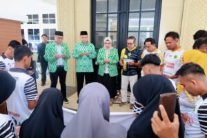 Satukatanews.com. – BARRU – Bupati Barru, Andi Ina Kartika Sari, S.H., M.Si., secara resmi melepas Kontingen Kabupaten Barru yang akan berlaga pada ajang Pra Pekan Olahraga Provinsi (Pra Porprov) cabang olahraga Petanque. Prosesi pelepasan berlangsung di Rumah Jabatan Bupati Barru, Senin (29/09/2025).