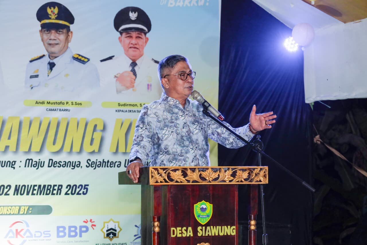 Satukatanews.com. – BARRU – Mewakil Bupati Barru, Wakil Bupati Barru, Dr. Ir. Abustan Andi Bintang, M.Si., menghadiri puncak peringatan Hari Ulang Tahun (HUT) ke-33 Desa Siawung, yang digelar di halaman Kantor Desa Siawung, Kecamatan Barru, Minggu (2/11/2025) malam.