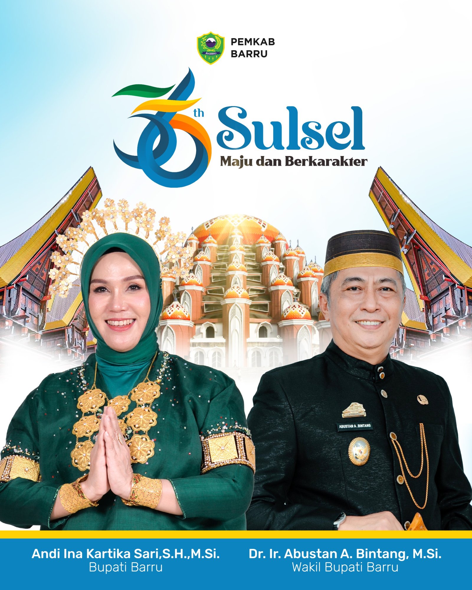 Pemerintah Kabupaten Barru menyampaikan apresiasi dan doa terbaik bagi kemajuan Provinsi Sulawesi Selatan. Semoga semangat kebersamaan, persaudaraan, dan kerja nyata terus mengiringi langkah kita dalam membangun daerah tercinta menuju Sulawesi Selatan yang maju dan berkarakter.