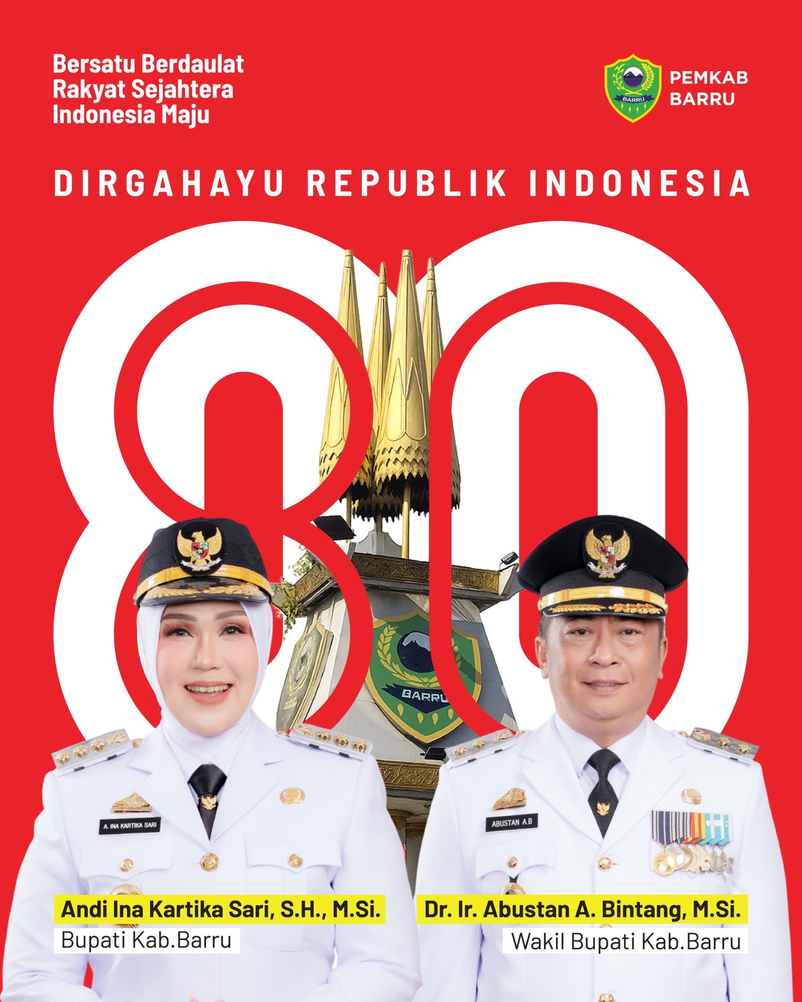 Satukatanews.com. – BARRU – Atas nama Pemerintah Kabupaten Barru, Bupati Barru menyampaikan ucapan selamat Dirgahayu Republik Indonesia ke-80 dengan mengusung tema nasional “Nusantara Baru, Indonesia Maju.”