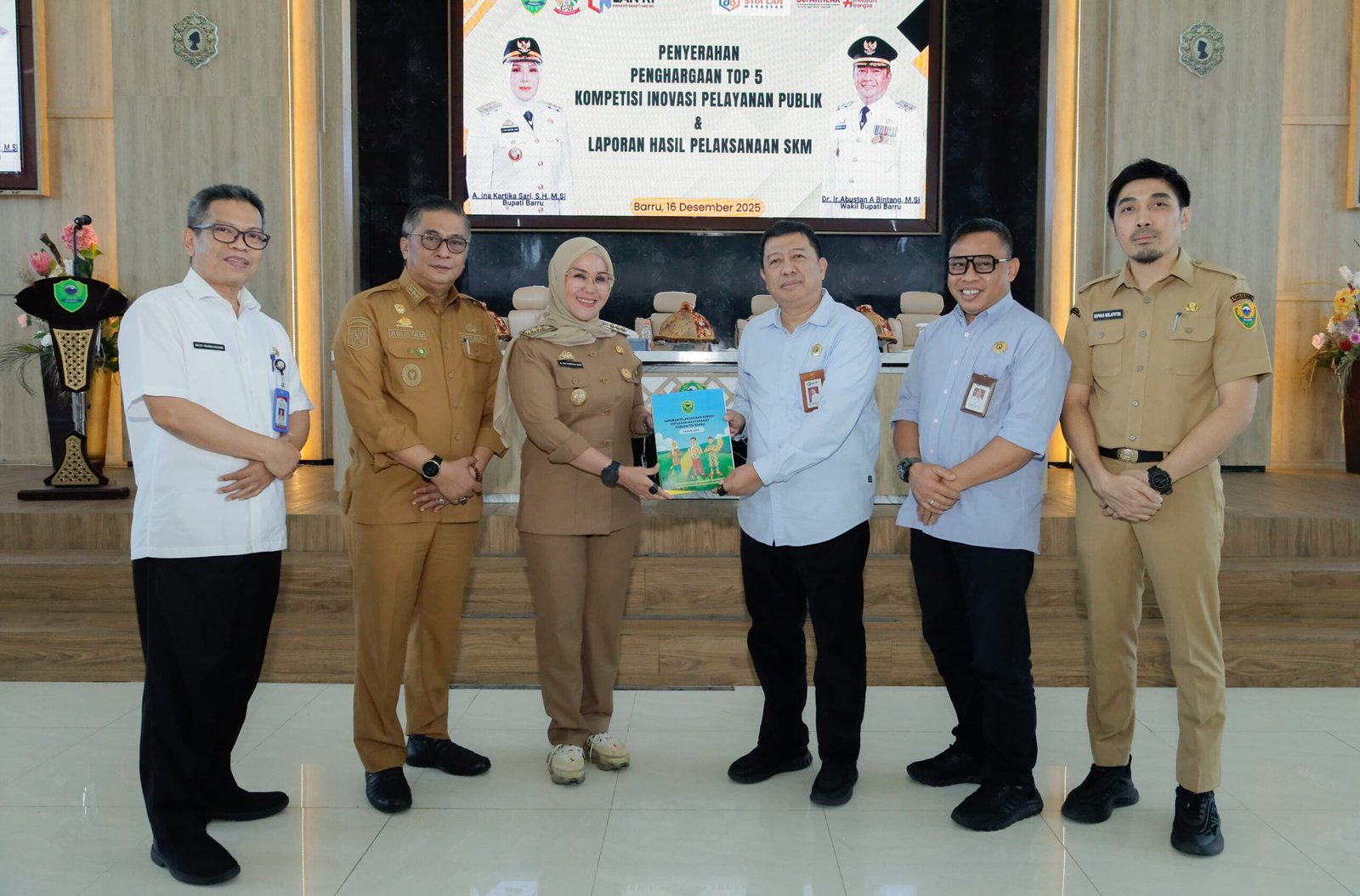 Satukatanews.com. – BARRU – Pemerintah Kabupaten Barru menunjukkan komitmen kuat dalam meningkatkan kualitas pelayanan publik melalui penyerahan Penghargaan Top 5 Inovasi Pelayanan Publik sekaligus penyampaian Laporan Hasil Survei Kepuasan Masyarakat (SKM) Tahun 2025, Selasa (16/12/2025).