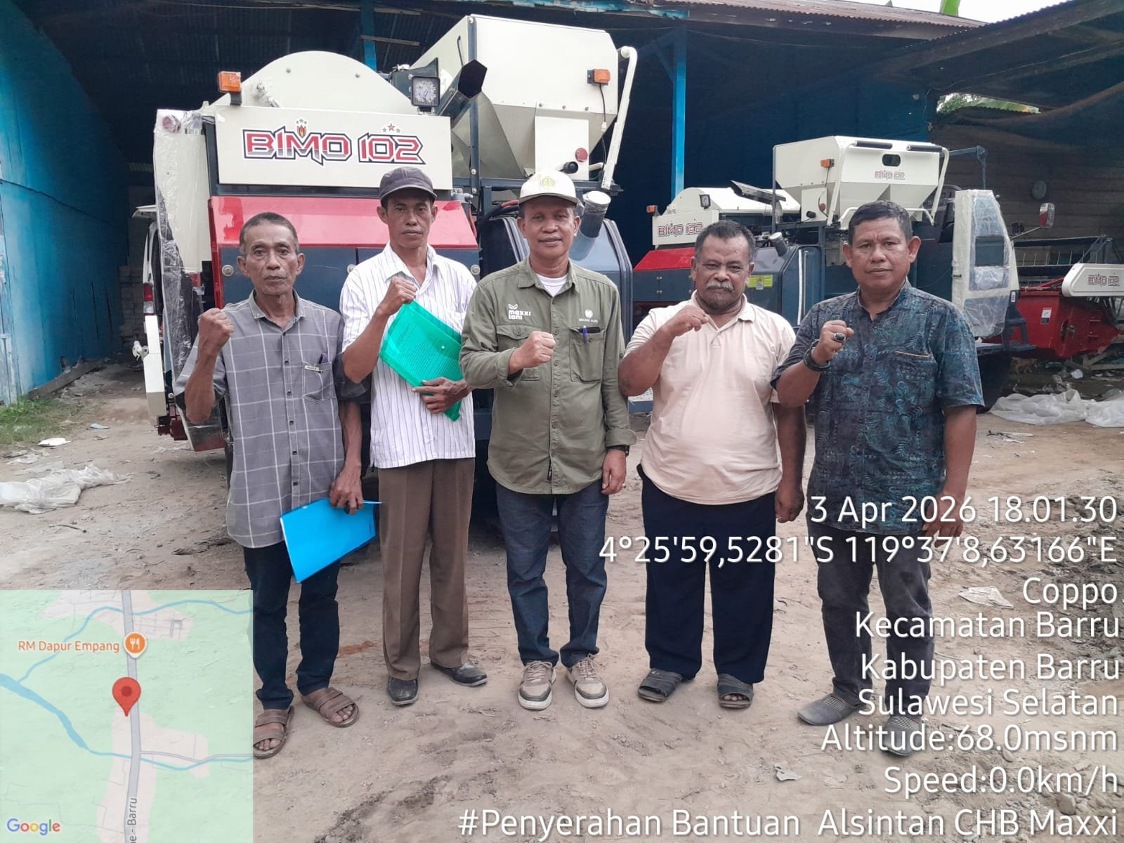 Satukatanews.com. – BARRU – Pemerintah Kabupaten Barru melalui Dinas Pangan, Tanaman Pangan, Hortikultura, dan Perkebunan (TPHBUN) menyerahkan bantuan alat dan mesin pertanian berupa combine harvester kepada kelompok tani penerima. Jumat 3/4/2026.