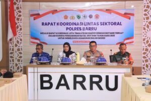 Rakor dipimpin langsung oleh Kapolres dan dihadiri Bupati Barru Andi Ina Kartikasari, S.H., M.Si., Sekda Barru Abu Bakar, S.Sos., M.Si., unsur TNI, Forkopimda, pimpinan OPD, tokoh agama, serta para pejabat utama dan Kapolsek jajaran Polres Barru.
