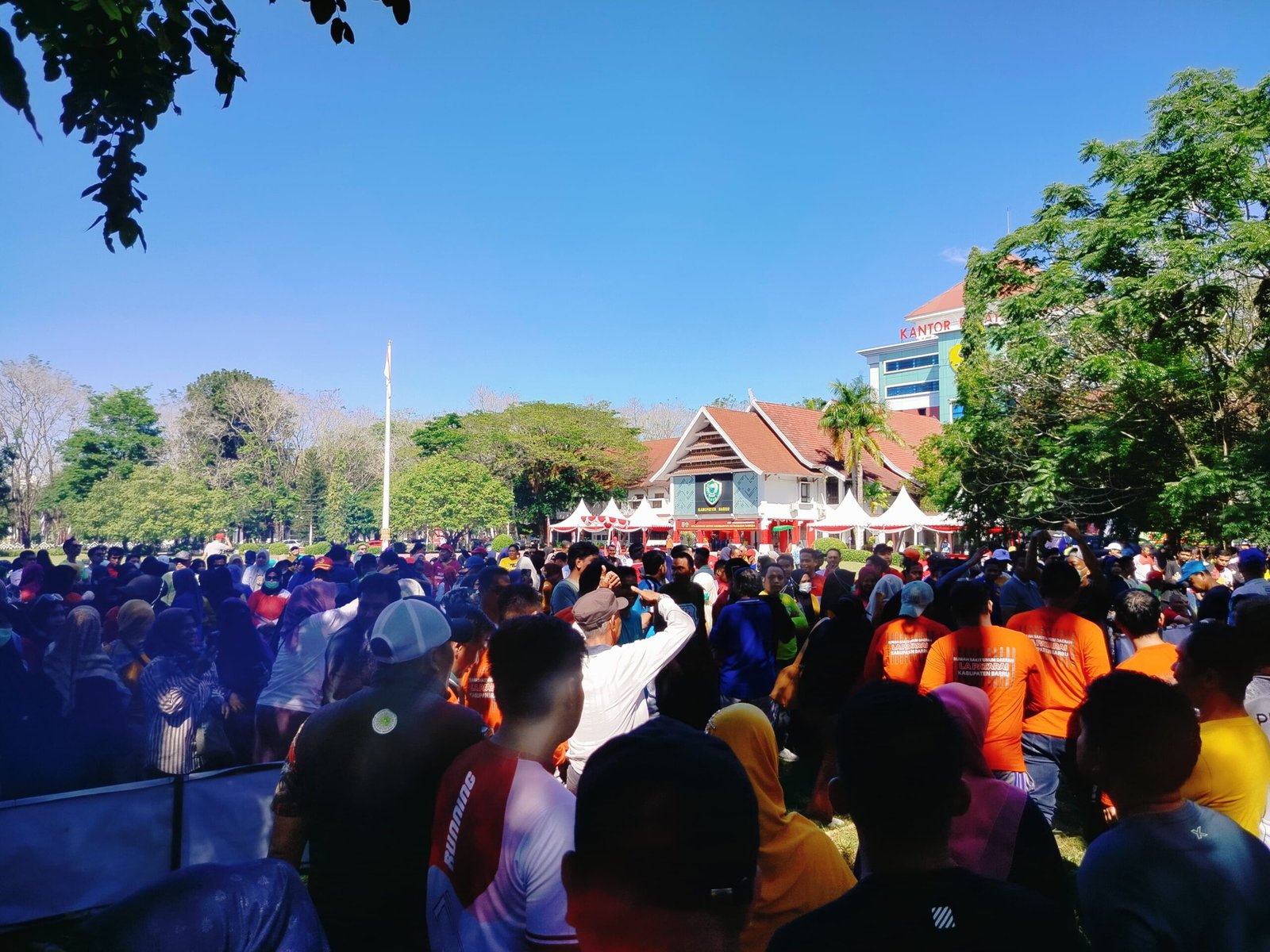 Kepala Disparpora Kab.Barru sekaligus Ketua Panitia Lomba, H. Andi Unru, ST., M.S.P., hadir memberikan semangat kepada para peserta dan mengapresiasi antusiasme seluruh OPD yang ikut berpartisipasi.