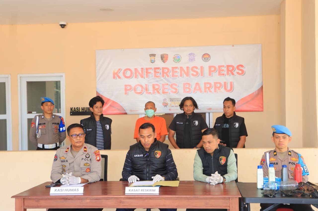 Penangkapan dilakukan oleh Tim Resmob Satreskrim bersama Opsnal Satintelkam Polres Barru pada Minggu (21/9/2025) sekitar pukul 14.00 WITA di Aroppoe, Desa Tellumpanua.
