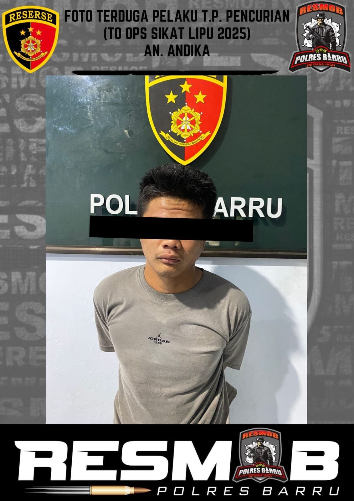Pelaku diketahui berinisial A alias D, warga Dusun Bontorea, Desa Beroanging, Kecamatan Bangkala Barat, Kabupaten Jeneponto. Ia ditangkap pada Rabu (27/8/2025) sekitar pukul 16.00 Wita di area Islamic Centre Barru. Penangkapan tersebut dipimpin langsung oleh Ipda Muh. Fauzi Nur Alifka, S.Tr.K., M.H.