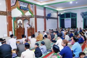 Didampingi Ketua TP PKK Kabupaten Barru, Asisten 3 Setda Barru, Kabag Organisasi Setda Barru, Abustan mengawali kegiatan dengan shalat isya berjamaah dilanjutkan dengan penyerahan bantuan syiar Ramadhan 1447 H pemerintah Kabupaten Barru.