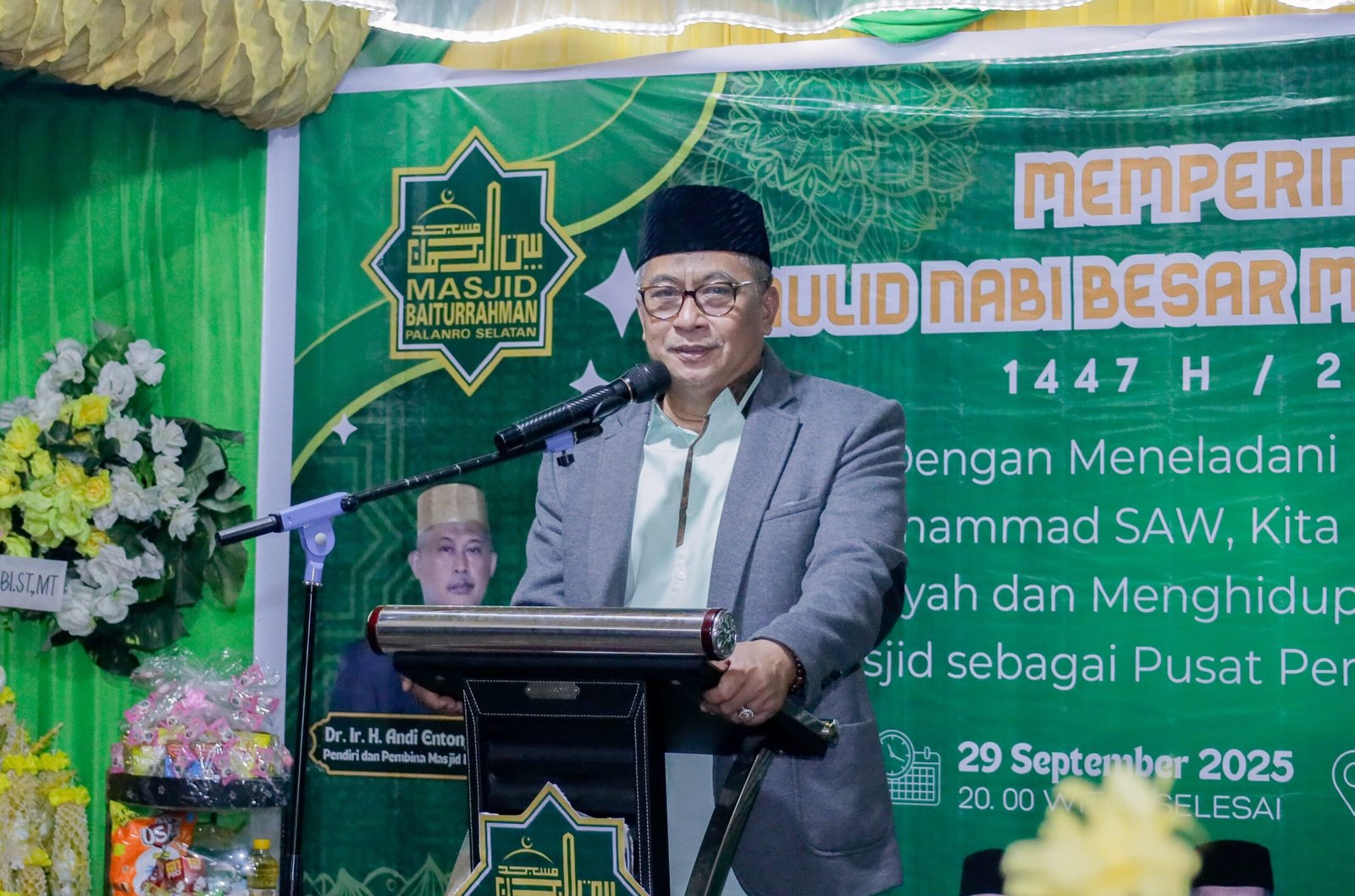 Satukatanews.com. – BARRU – Wakil Bupati Barru, Dr. Ir. Abustan Andi Bintang, M.Si., menghadiri peringatan Maulid Nabi Muhammad SAW di halaman Masjid Baiturrahman Palanro, Kecamatan Mallusetasi, Senin (29/9/2025) malam.